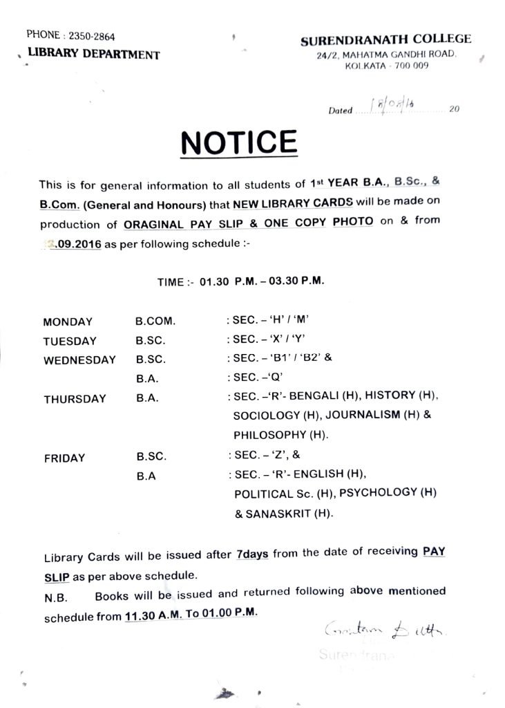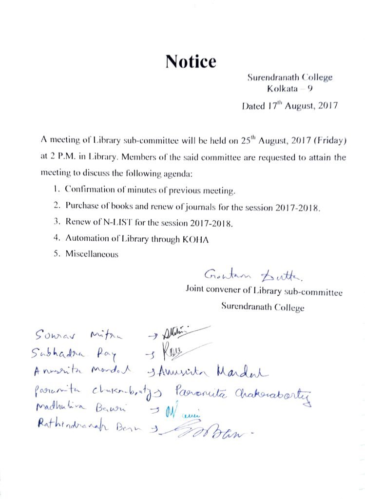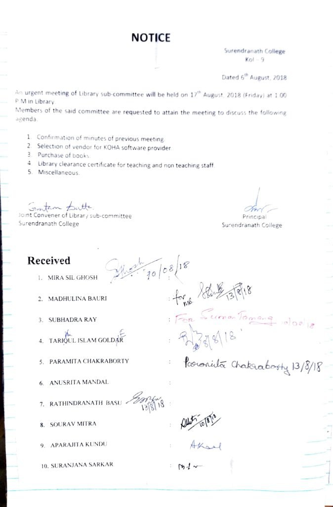 Email: library_subcommittee@surendranathcollege.ac.in