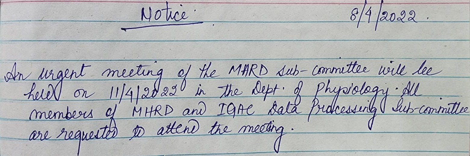An Urgent meeting of M.H.R.D Sub Committee will be held in Principal's Chamber on 1.08.2014 at 12:00 Noon |