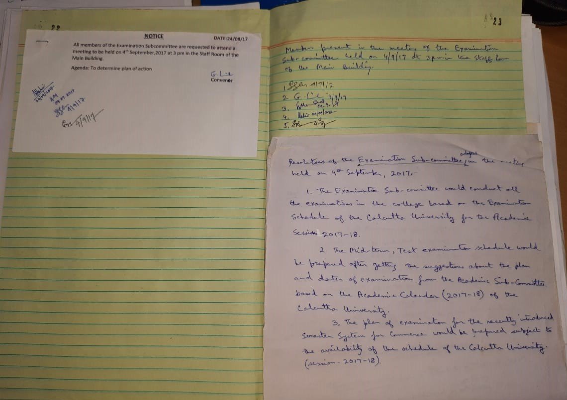 For the smooth conduct of examinations, the Exam sub-committee after being notified by the University of Calcutta, about the allotted exams as well as the examinee details, conducts meetings to determine the procedural details.