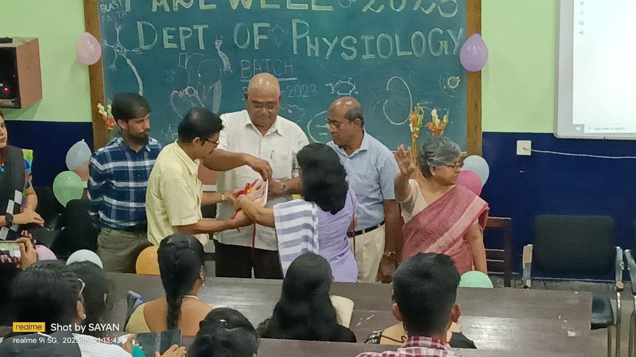 The first class conducted in the Department was on practical Physiology and the teacher was Dr. Ghoshal . He has taught in this Department for a period of about fifty nine years since 1958 to 2017 , till 1995 as a permanent faculty and then as Guest faculty . He was felicitated in this College by the Department for his glorious fifty years of teaching . He became a legendary teacher during his life time . As a visiting faculty he taught in various post graduate department of different higher education Institutes like Calcutta University , Viswabharati etc . Actually he was fond of teaching and his popularity among the students was exemplary .